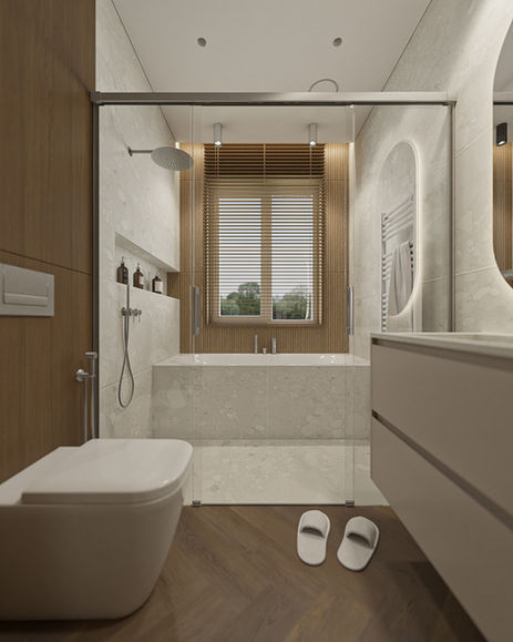 The flooring throughout is high-quality vinyl — chosen after rethinking the initial plan for parquet. The result is both practical and elegant, offering the authentic look and texture of natural wood while ensuring easy maintenance and long-term durability for everyday living.